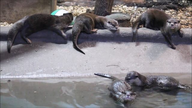 Азиатские бескоготные выдры кто зевает, кто с камушком играет, а кто-то в воде сидит 18.11.2024