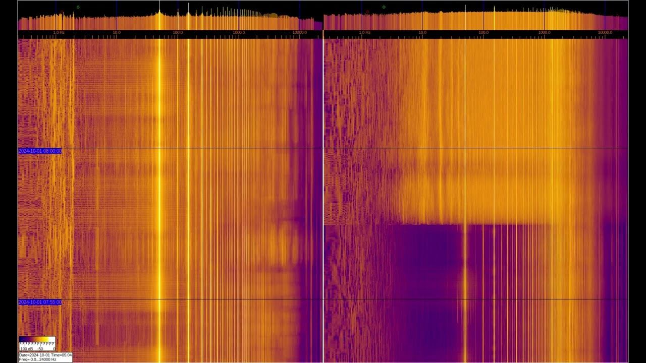 The left and right signals are taken from inductive sensors with ferromagnetic elements, but the left one is additionally connected to grounding on 2 stainless steel pins buried 1 m and spaced 1 m apart. You can see a large number of harmonics from the power supply and various artificial signals. Of interest are signals at frequencies below 50 Hz, where you can observe the operation of specialized equipment and communication signals of submarines and underground objects. Separately, it is worth considering signals in the region of 1-3 Hz on the left spectrum, which relate to the geomagnetic background, which is modulated by solar activity, They can be viewed in more detail in the video called “Signals from the Earth,” which are in the playlists below. The sound in the video is recorded in real time - a signal from sensors. О ПРОИСХОЖДЕНИИ ЧАСТОТНОЙ МОДУЛЯЦИИ СЕРПЕНТИННОЙ ЭМИССИИ https://youtu.be/bwWHggY1IVU?si=xAX1diRKI9MxQJ88&t=1740 Previous monitoring is in playlists: EMF monitor https://youtube.com/playlist?list=PLiRg2YCbXcwn41BHqADKVBep_TgVq6XUN Очень Низкая Частота ~ Very Low Frequency https://youtube.com/playlist?list=PLiRg2YCbXcwnp5DxM4PnSs7k_Rnypaqek SIGNALS IN THE GROUND https://youtube.com/playlist?list=PLiRg2YCbXcwl6f3Bf5arHbGSOCNE5U71O поддержать канал: 8-999-654-93-44