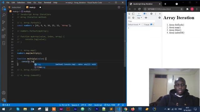 #JavaScript #ArrayIteration #eKICHProgramming In this video, we learn how to run JavaScript array iterations. Array.forEach(), Array.map(), Array.filter(), and Array.indexOf() methods. Note: There are more array iteration methods that were not looked at. Watch Video on JavaScript Array Methods by clicking the below link https://bit.ly/3hO8UPR Get Tutorial Materials by following the below link https://bit.ly/3AfQgao