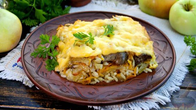 Обжаренные нежная печёнка, лук и морковь задают вкус, а корочка из расплавленного сыра делает блюдо ещё аппетитнее. Интересный изящный вкусовой оттенок придаёт запеканке яблоко. #СытнаяЗапеканка