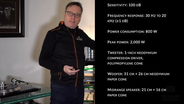 Tecsart is pleased to present the Atlantis Lab AT31 All the loudspeakers are designed and built in Auvergne using as many local components as possible. Cabinetwork, spikes, terminal blocks, packaging, screws and some capacitors. The rest of the equipment comes from the European Community and in particular from Italy for the hp and capacitors. The specification was to obtain maximum definition and precision, both in terms of sound balance and respect for timbre, at low or very high sound levels. Respect for dynamics throughout the entire bandwidth, with minimum distortion and aggressiveness, was of major importance. The bass is provided by 2 bass drivers, 31 and 26 cm, with paper diaphragms and neodymium magnets, using the same principle as that used on the AT 21 front and rear, in order to get these 2 high-output hp down to very low levels. The 16cm paper midrange reproduces the 250 - 6000hz band. It has the particularity of a very high output (102db/1w/1m), an astonishing power of acceleration in order not to lose any details. It also has a natural musicality that we've managed to preserve after filtering. Specifications : 3-way speaker / 4 HP 2 x Boomers 31 and 1 x 26 cm neodymium paper cone; 1 x Medium 16 cm neodymium paper cone. 1 tweeter 1 inch neodymium polypro membrane. Efficiency: 100db/1w/1m Bandwidth: 30 hz 20 kHz (+/- 1db) Impedance: 4 ohm Power handling: 800w continuous 2000w pulsed Dimensions ( H x D x W ) : 122 x 41 x 41/29