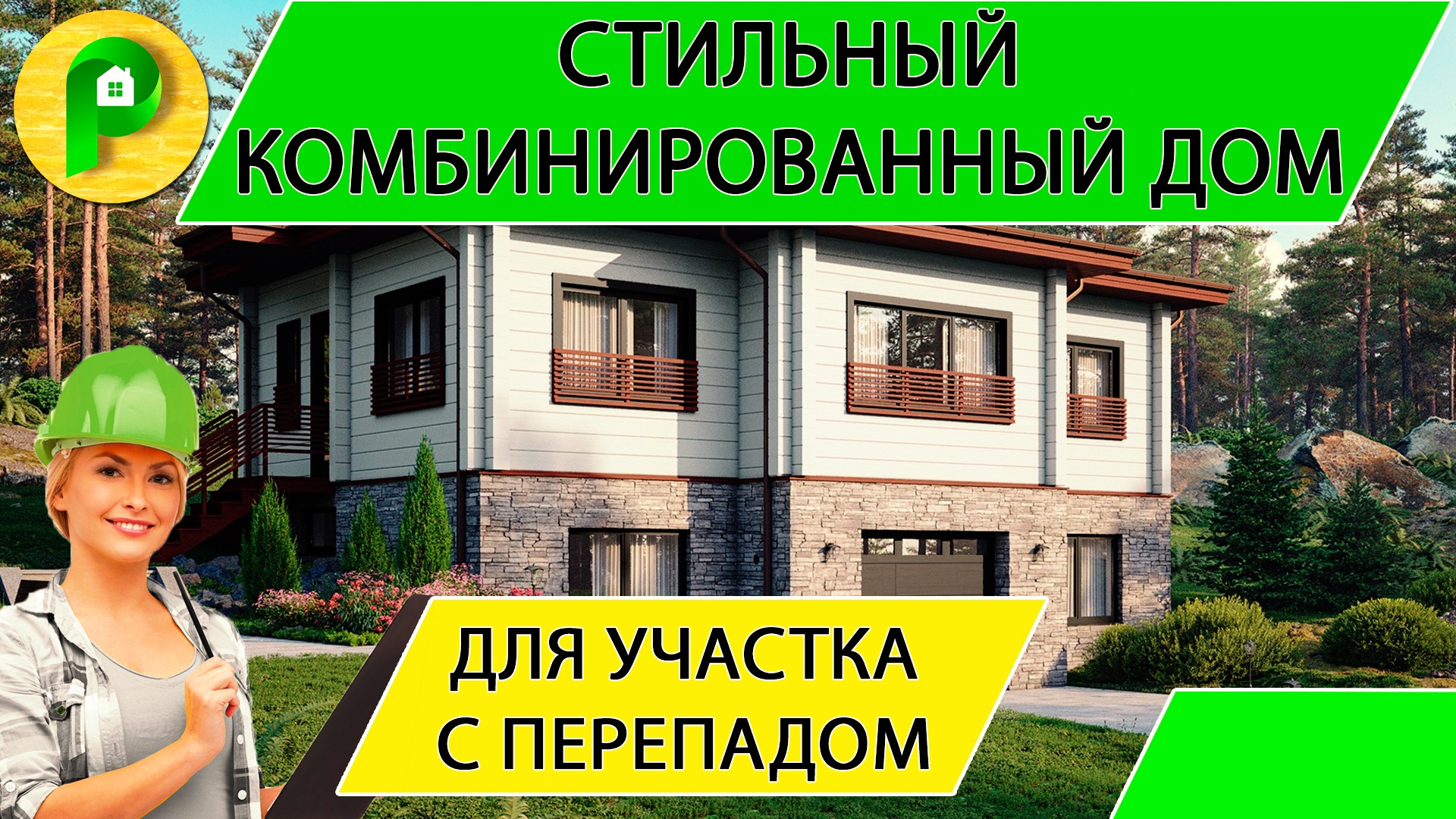 Комбинированный дом для участка на склоне с большим перепадом, сауна, гараж Ремстройсервис М 387