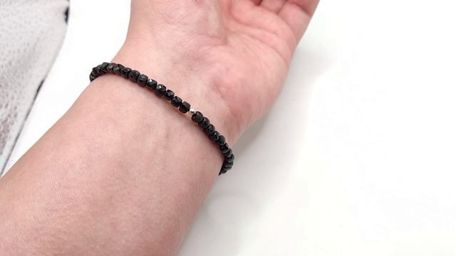Браслет из бусин: Чёрный Турмалин (Шерл). Гранёные кристаллы на резинке. Место добычи камней - Намибия. Природные камни. Размер бусин: ~4,5 х 4,5 мм. На запястье в обхвате до: 1) - 18 см 2) - 18,5 см Б112