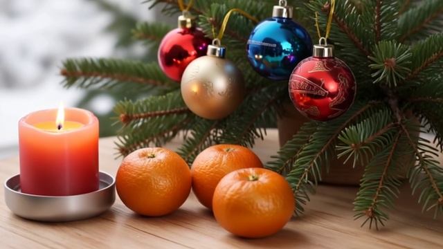 Футаж. Новый год. Свеча. Мандарины.