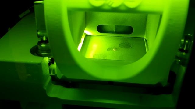 First test print on our new EOS M 100 metal 3D printer. Printing Stainless Steel 316L. Layer height 20 um, spot size ~50 um We are printing five "chess towers" as part of the training, print time 12 hours.