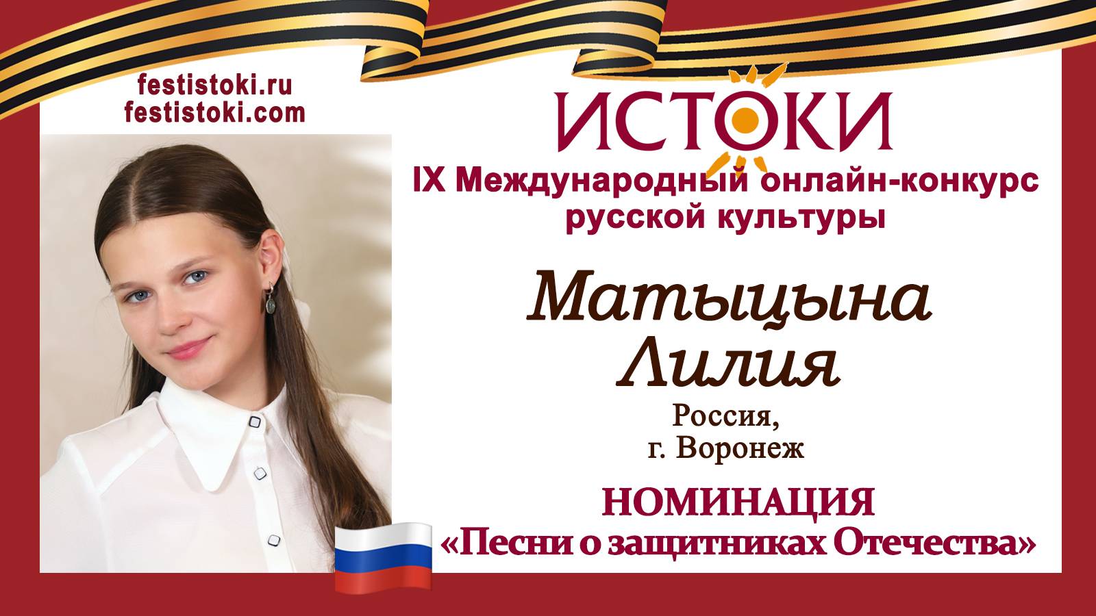 Участник IХ Международного онлайн-конкурса русской культуры "Истоки". Номинация "Песни о защитниках Отечества". Песня "Плач матери". Автор Евгения Колмакова. Сайт: festistoki.ru / festistoki.com E-mail: festistoki@mail.ru