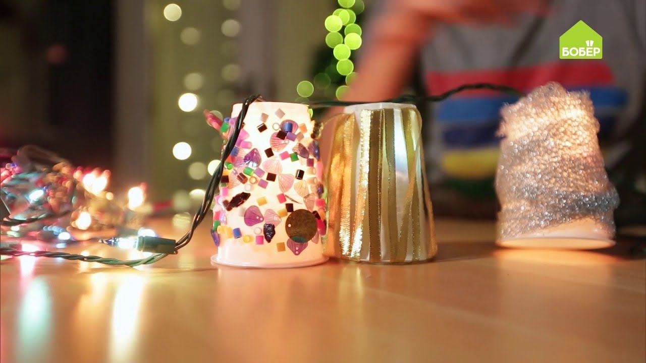 Абажуры для гирлянды из пластиковых стаканчиков. Классная идея для поделок с детьми!