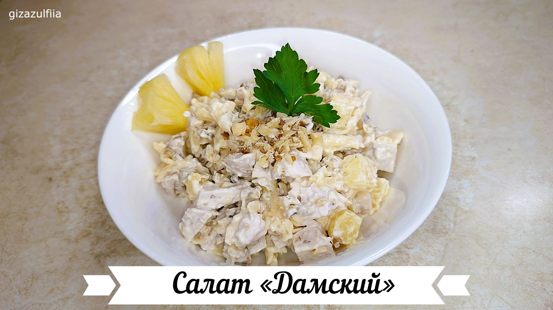 Представляю Вашему вниманию рецепт салата, который просто готовится, а благодаря отличному сочетанию ингредиентов получается очень вкусными. Такой салат можно приготовить как на праздничный стол, так и на повседневное меню. Обычно такой салат готовят с чесноком, но мне больше нравится с грецким орехом. Ингредиенты на 4 порции: Отварная куриная грудка – 200 гр. Сыр твердый – 100 гр. Ананасы консервированные – 200 гр. Грецкие орехи – 70 гр. Майонез – 3-4 ст. л. Соль по вкусу Способ приготовления: 1. Отварную куриную грудку нарезать кубиком. 2. Ананасы консервированные нарезать кубиком. 3. Сыр твердый натереть на крупной терке. 4. Грецкие орехи немного обжарить на сухой сковороде и нарезать. 5. Сложить все ингредиенты в одну посуду. И заправить майонезом. . . . . . #салат #салатскурицей #праздничныйсалат #салатдамскийкаприз #вкусныйсалат #рецептысалатов #салатсананасом #рецепт #салатдамский #какприготовить #салаты #дамскийкаприз #быстрыйсалат #салатнапраздник #рецептсалата #простойсалат #салатнапраздничныйстол #салатырецепты #салатсананасами #салатскурицейиананасами #салатнановыйгод #салатынапраздничныйстол #рецепты #праздничныесалаты #вкусныесалаты #салатссыром #дамский #салатскуринойгрудкой #салатсчерносливом #новогоднийсалат #recipe #салатсананасомикурицей #новыйсалат #салатна8марта #простыерецепты #новогодниесалаты #салатдамскийкапризсананасом #салатынановыйгод #салатсананасомикуринойгрудкой #салатынапраздник #оченьвкусныйсалат #пошаговыйрецепт #чтоприготовить #праздничныйстол #салатрецепт #вкусно #вкусныерецепты #менюнановыйгод