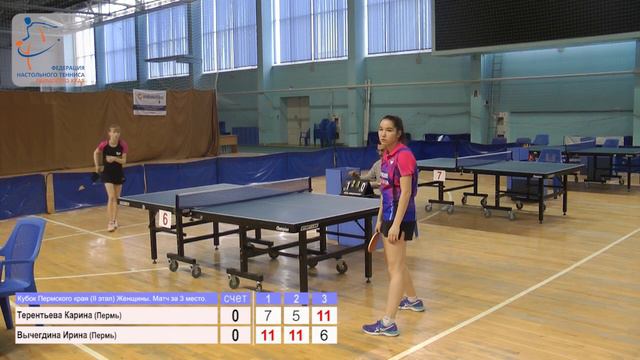 II этап Кубка Пермского края по настольному теннису 27-28 апреля 2019 года, Пермский край, д.Кондратово, ДС «Красава» Кубок Пермского края (II этап) Женщины. Матч за 3 место. Терентьева Карина (Пермь) VS Вычегдина Ирина (Пермь)
