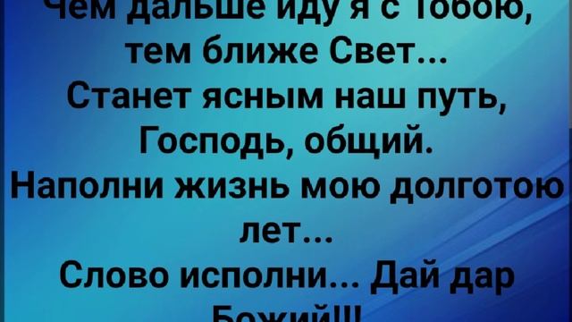ХРИСТИАНСКИЕ ПЕСНИ ДЛЯ ХВАЛЫ И ПОКЛОНЕНИЯ ПРОСЛАВЛЕНИЯ ВООДУШЕВЛЕНИЯ ЕВАНГЕЛИЗАЦИИ ДУХОВНОГО РОСТА ПРОБУЖДЕНИЯ #господь#музыка#христианская_музыка#музика#христианскиепесни#бог#христианскиестихи#любовь#христианство#стихи#песня#песни#иисус#иисусхристос#иисусмойбог#иисус_христос#иисусбог#иисусгосподь#хвалы_и_поклонения#хваление#хвала#прославление#духсвятой#духовныйрост#духовноепробуждение#духовность#евангелие#евангелизация#евангельскаявесть#духовный_рост#пробуждение#рождество#рождествохристово#божий#божийнарод#божьеслово https://stihi.ru/avtor... "БОГ ВЕРЕН СЛОВУ!!!" СЛОВА, МУЗЫКА , ОБРАБОТКА: ЖАННА ВОЛКОВА-ВАРЛАМОВА Стихи Жанна Волкова-Варламова https://stihi.ru/2025/01/09/325 Живу на свете, и, много людей мне встречается. Но сердце моё всегда тихо одно говорит. Что Бог даёт, то придёт... Оно не отнимается... Бог верен Слову... Обещанное осуществит!!! Припев: Чем дальше иду я с Тобою, тем ближе Свет... Станет ясным наш путь, Господь, общий. Наполни жизнь мою долготою лет... Слово исполни... Дай дар Божий!!! Я северу скажу: Отдай, и, Югу - не удерживай... Оберегай, Господь, обетование, которое дал. Укрепляй веру мою, и, удаляй, Бог, недоверие... Награди благочестивого чтобы процветал! Припев: Чем дальше иду я с Тобою, тем ближе Свет... Станет ясным наш путь, Господь, общий. Наполни жизнь мою долготою лет... Слово исполни... Дай дар Божий!!! Вместе с Тобой обетование обоснуём... Чтобы Рекой живой в меня лилось оно. В бодрствовании буду я день за днём... Чтобы невидимое было осуществлено! Скажу Востоку: Принеси мне лучшее... Запад услышит, и, всё так сбудется. Северу скажу: Отдай благополучие,.. Бог Верен Слову..над ним трудится́! Припев: Чем дальше иду я с Тобою, тем ближе Свет... Станет ясным наш путь, Господь, общий. Наполни жизнь мою долготою лет... Слово исполни... Дай дар Божий!!! 09.01.2025 Жанна Волкова-Варламова