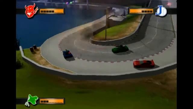 A 3 player battle game on the Fort Gidlow track on Mashed. Me: Melon Joe: Red Leighton: Blue Jay