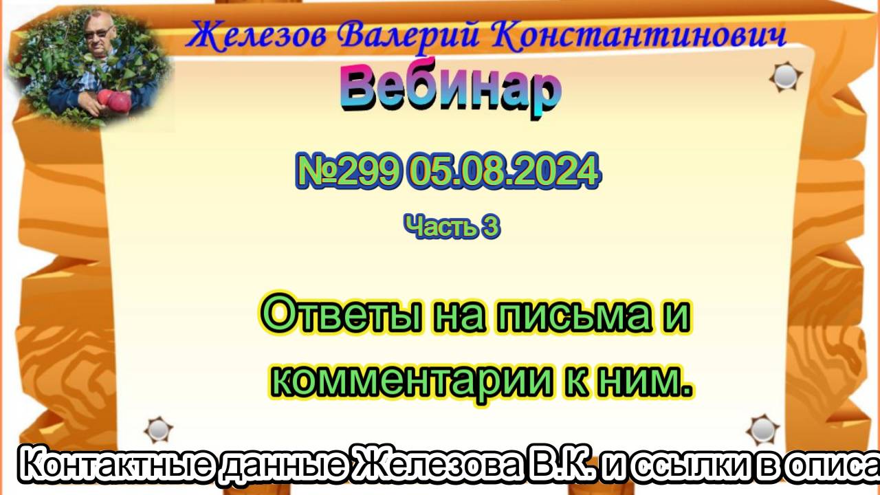Железов Валерий. Вебинар 299. ч.3. Ответы на письма и комментарии к ним.