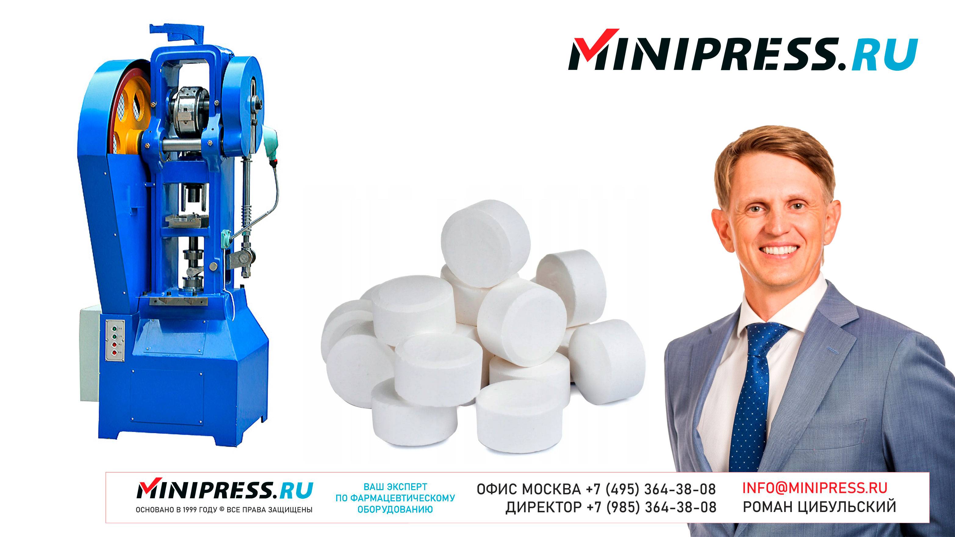 Механический таблеточный пресс JT-6 https://Minipress.ru/katalog/ Фармацевтическое оборудование. Специалисты в фармацевтическом оборудовании и технологиях производства лекарств. Более 20 лет оказываем нашим клиентам помощь в выборе, поставке, наладке различного фармацевтического оборудования! Вы в поиске надежного поставщика оборудования? Мы предоставим вам лучший сервис 24/7. Собрана лучшая команда профессионалов в фармацевтической отрасли и налажены стабильные связи с лучшими производителями. Мы не только продаем, но и производим многие модели оборудования Директор компании Минипресс Роман Цибульский Поставка фармацевтического оборудования в Россию Пишите: info@minipress.ru Телефон +7(495)364-38-08; Мобильный +375(29)308-00-00 Россия, Москва Skype: RomanTsibulsky; ICQ: 310-134-490 Подписывайтесь на наш видео канал на Youtube https://youtube.com/user/wwwMinipressru Обновленный сайт https://Minipress.ru Каталог оборудования https://Minipress.ru/katalog/ МЫ В СОЦИАЛЬНЫХ СЕТЯХ G+ https://plus.google.com/+RomanTsibulsky/ FB https://facebook.com/roman.tsibulsky YOUTUBE https://youtube.com/user/wwwMinipressru IN https://ru.linkedin.com/pub/roman-tsibulsky/a6/933/661 БОЛЬШОЙ КАТАЛОГ ФАРМАЦЕВТИЧЕСКОГО ОБОРУДОВАНИЯ https://minipress.ru/katalog/ Постоянно обновляемый каталог различного фармацевтического оборудования с фотографиями, описаниями, видео и ценами. ПЕРСОНАЛЬНЫЙ МЕНЕДЖЕР 24 ЧАСА https://minipress.ru/katalog/ Вы общаетесь по всем вопросам, с момента первой консультации и до получения оборудования, с одним специалистом. СПЕЦИАЛИСТЫ И ТЕХНОЛОГИ https://minipress.ru/katalog/ Имеем обширные связи в фармацевтической среде, найдем любого специалиста, поможем с освоением оборудования и технологий. ОБСУЖДЕНИЕ ВАШИХ ИДЕЙ ПО ПРОИЗВОДСТВУ ПРОДУКЦИИ https://minipress.ru/katalog/ Поможем в оценке ваших идей. Большой опыт в организации различных производств и выпуске продукции. Ценные советы. ФАРМАЦЕВТИЧЕСКОЕ ОБОРУДОВАНИЕ Мы поставили перед собой задачу, помогать нашим клиентам в правильном выборе фармацевтического оборудования. Многолетний опыт подобной деятельности показывает, что многие клиенты сталкиваются, в первую очередь, с непониманием технологического процесса. Покупка оборудования должна быть финальной точкой после подробного обсуждения задачи, консультацией с производителем оборудования, отправкой сырья и материалов на фабрику, тестирования в работе. ДЛЯ ТАБЛЕТОК https://minipress.ru/katalog/category/farmacevticheskoe_oborudovanie/ Смешивание порошков, гранулирование, прессование, обеспыливание, покрытие оболочками, фасовка, упаковка, счет, нанесение логотипов ДЛЯ ЖЕЛАТИНОВЫХ КАПСУЛ https://minipress.ru/katalog/category/farmacevticheskoe_oborudovanie/kapsulyatory-dlya-tverdyh-zhelatinovyh-kapsul/ Фасовка порошков и масел, обеспыливание, счет и фасовка, упаковка, нанесение логотипов. ФАСОВКА И УПАКОВКА https://minipress.ru/katalog/category/upakovochnoe_oborudovanie/ Упаковка в пластиковые и стеклянные флаконы, блистер, фольгу, ламинированную бумагу, стеклянные ампулы, саше, стрипы, тубы, тюбики, контурную ячейку. ТЕХНОЛОГИЧЕСКОЕ https://minipress.ru/katalog/category/eksperimentalnoe-oborudovanie/ Лабораторное, аналитическое, подготовительное, отдельные машины и линии под ключ. СФЕРЫ ДЕЯТЕЛЬНОСТИ Наша компания занимается множеством направлений фармацевтического бизнеса! Предлагаем Вам посетить страницы нашего сайта https://www.Minipress.ru по различным специализациям. ОБОРУДОВАНИЕ ДЛЯ НАКЛЕЙКИ ЭТИКЕТОК НА БУТЫЛКИ АМПУЛЫ ФЛАКОНЫ https://minipress.ru/katalog/oborudovanie-s-otzyvami/oborudovanie-dlya-naklejki-etiketok-na-butylki-ampuly-flakony/ Автоматическое этикетировочное оборудование для этикеток на клеевой основе БЛИСТЕРНЫЕ МАШ