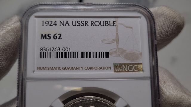 рубль 1924 ПЛ в слабе NGC MS62 разновидность Квадратные окна