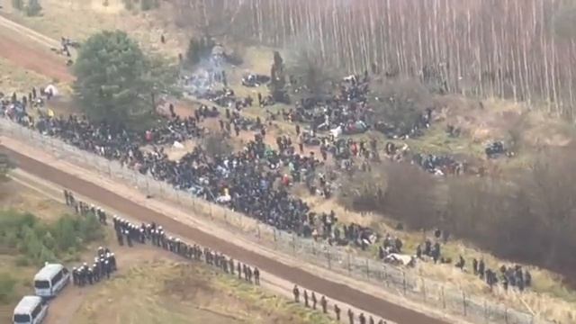 Общий вид с воздуха текущей ситуации на польско-белорусской границе. Сотни мигрантов столпились у польского забора на нейтральной полосе. Мигранты достигли польской границы, однако польские военные приняли боевую готовность и принимать беженцев на своей стороне не планируют. В то время белорусская погранслужба рапортует, что вся большая группа мигрантов ушла в Польшу, покинув территорию Белоруссии. И в это же время Варшава публикует видео с вертолета, которое якобы доказывает, что беженцы - на белорусской стороне. Похоже, они сейчас в нейтральной зоне. Ждём что будет дальше.