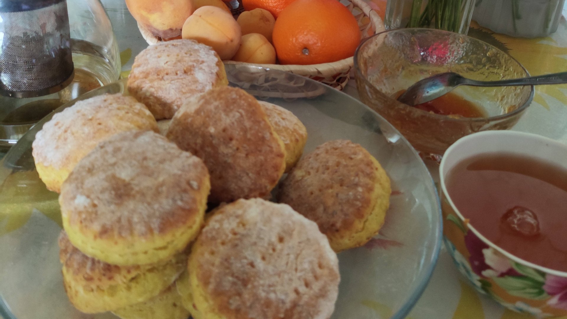 Коржики, абрикосы, завтрак