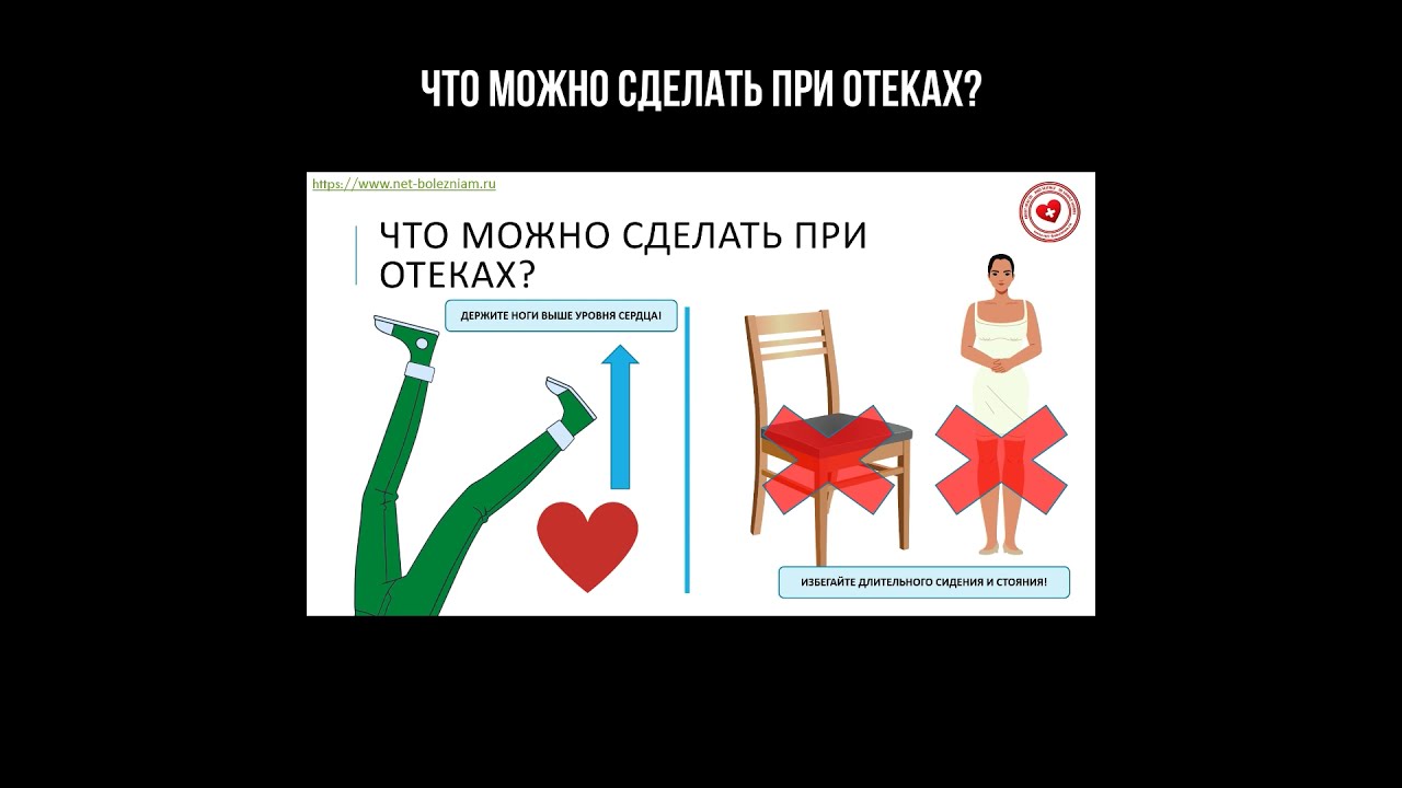 Что можно сделать при отеках? Подъем ног выше уровня сердца стимулирует кровообращение, устраняет отечность ног. Избегайте длительного сидения на стуле или стояния на ногах. Если отеки ног не исчезают, следует обратиться к врачу. #Длительноесидение #Здоровьеног #Отеки