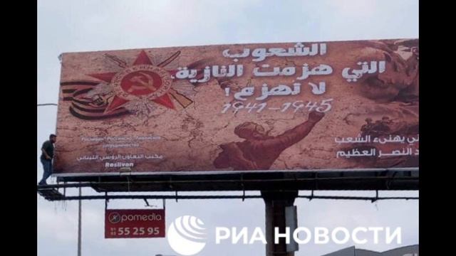 Посвященные 80-летию Победы билборды появились на автомагистралях Ливана, передает корреспондент РИА Новости