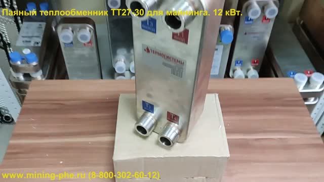 Обзор паянного теплообменника ТТ27-30. Аппарат обладает следующими характеристиками: Рабочая температура от: –50 °С до +200 °С Расчетное давление: от 30 бар до 45 бар Присоединение: Ду25 (1) - наружная резьба (также возможны варианты патрубков с внутренней резьбой и под пайку) Площадь теплообмена, м2: 0,81 Количество пластин: 30 шт. Материалы пластин и корпуса: Нержавеющая сталь AISI 316 Срок эксплуатации: до 20 лет