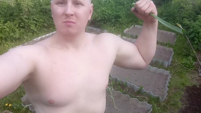 Свой чеснок у бабушки на даче.