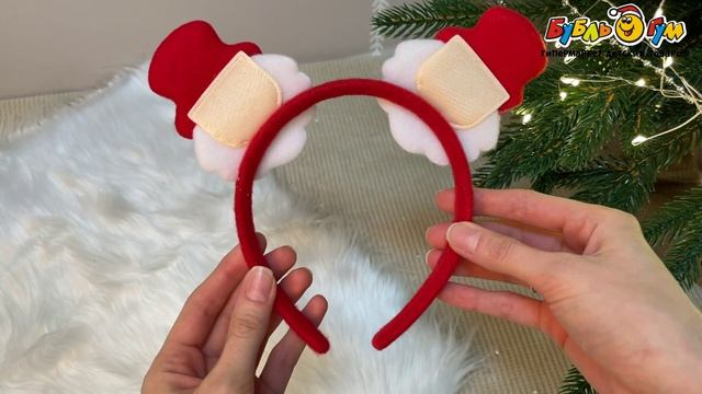 332779 Ободок Lanson goods новогодний с фигурками Санта-Клаусов красный