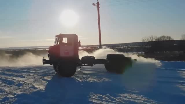 С грузового автомобиля автомобиля ГАЗ-66 снят родной прожорливый двигатель. Вместо него установлен мотор от ВАЗ-2110. Теперь расход топлива на этом ГАЗоне стал небольшим - около 15 литров на сотню. Скорость и тяговитость хорошие. Тест драйв авто это показал.