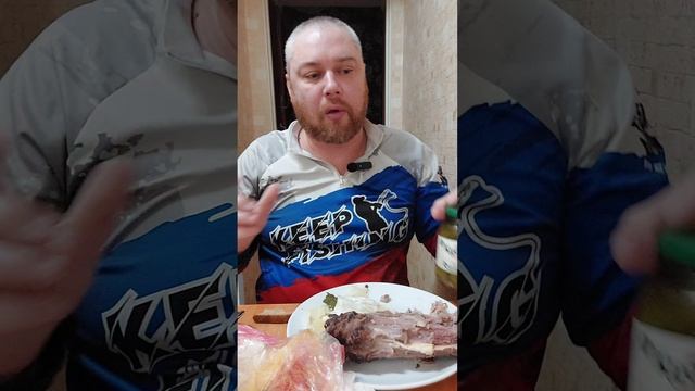 На ужин варёная баранья шея с тестом и маринованными огурцами. #варенаябаранина #варенаяшея #мукбанг #мукбангроссия #еданакамеру