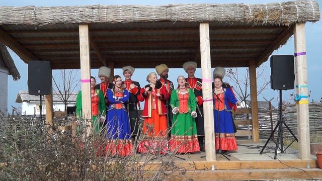 Выступление народного ансамбля казачьей песни "Колос" на подворье Тихорецкого района в этно-станице Атамань перед гостями.