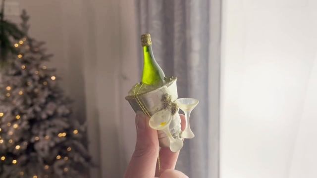 Стеклянная Ёлочная игрушка ШАМПАНСКОЕ ПОД БОЙ КУРАНТОВ, 10 см, ZCIT1484G