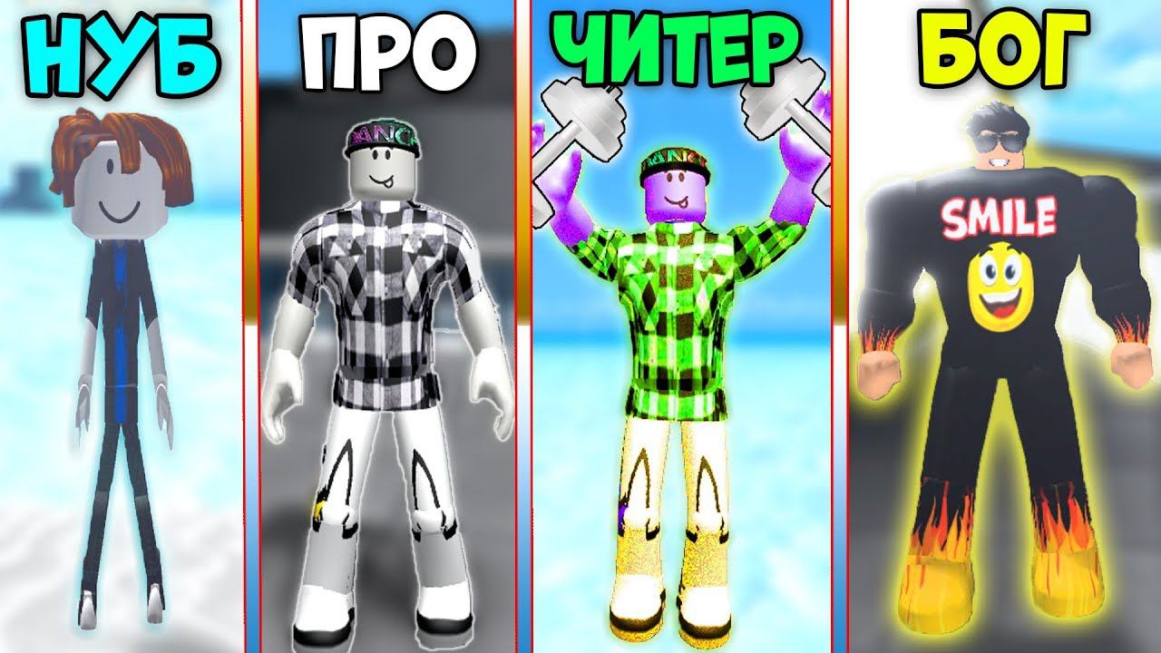 НУБ против ПРО против ЧИТЕРА против БОГА в симуляторе КАЧКА РОБЛОКС БИТВА СМАЙЛ ФРЕДДИ ДЕРЗКИЕ КАЧКИ