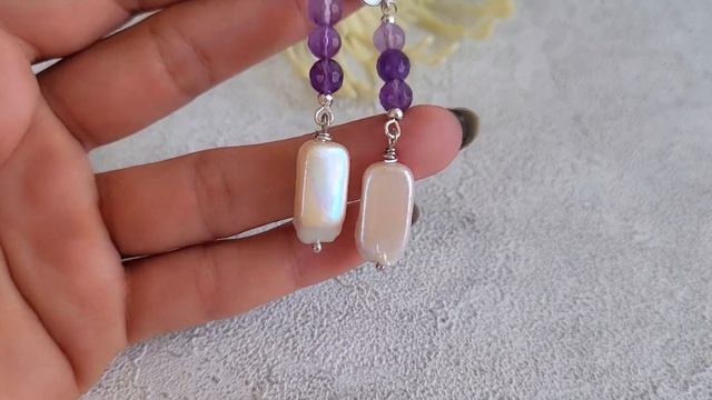 Серьги длинные из аметиста с жемчугом барокко
