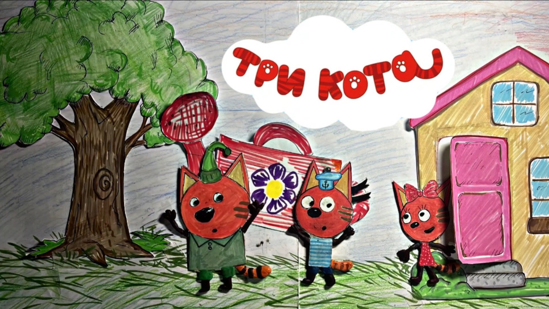 Три кота поливают дерево
