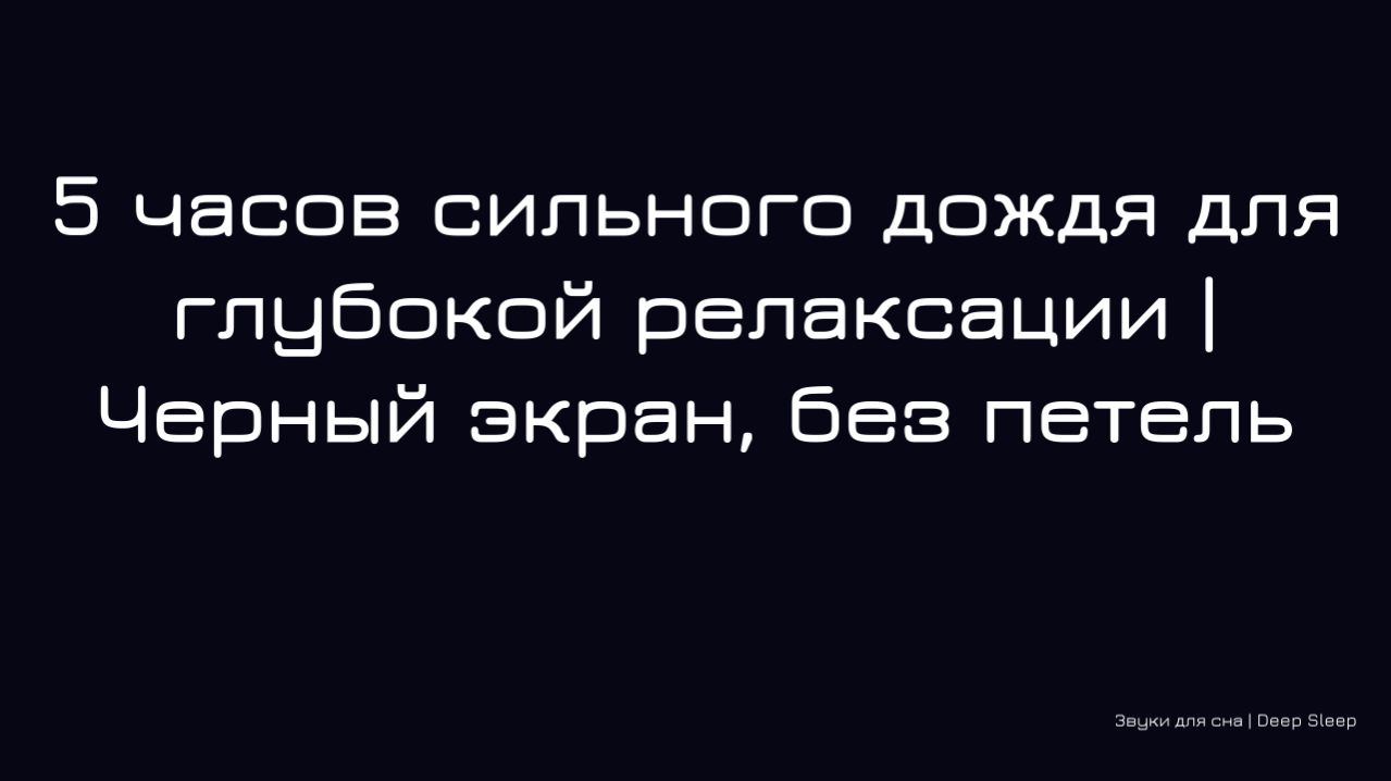🌧️ Мощный, обволакивающий шум сильного дождя создает идеальное звуковое одеяло для полного расслабления и отдыха. Этот насыщенный природный звук маскирует посторонние шумы, успокаивает нервную систему и помогает достичь состояния глубокого покоя и умиротворения. 🔹 Полная 5‑часовая версия с чёрным экраном, без петель и затуханий – только чистый, непрерывный звук ливня, который не прервёт ваш отдых. 📥 Если хотите слушать без рекламы и скачивать видео в высоком качестве, заходите на Boosty: https://boosty.to/deep_noise_sleep Подписывайтесь на канал и пишите, любите ли вы засыпать под звуки сильного дождя! 🌙 Евгений / Deep Noise Sleep Теги: сильный дождь, ливень, звуки дождя, глубокая релаксация, 5 часов, для сна, глубокий сон, белый шум, звуки природы, фоновый шум, успокоение, черный экран, без рекламы, скачать, heavy rain, relaxation sounds
