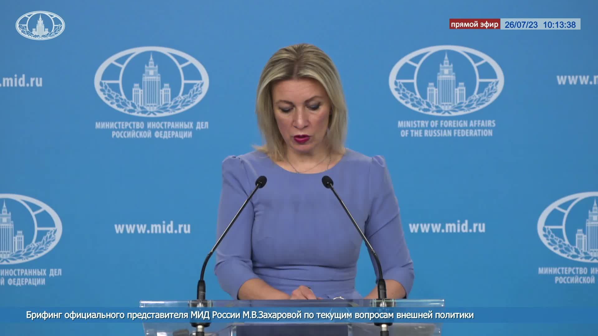 ? #ПрямойЭфир: Брифинг официального представителя МИД России М.В.Захаровой