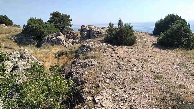 Иду мимо пещеры на горе Алчак-Кая в Судаке, на вершине растёт даже фисташковое дерево