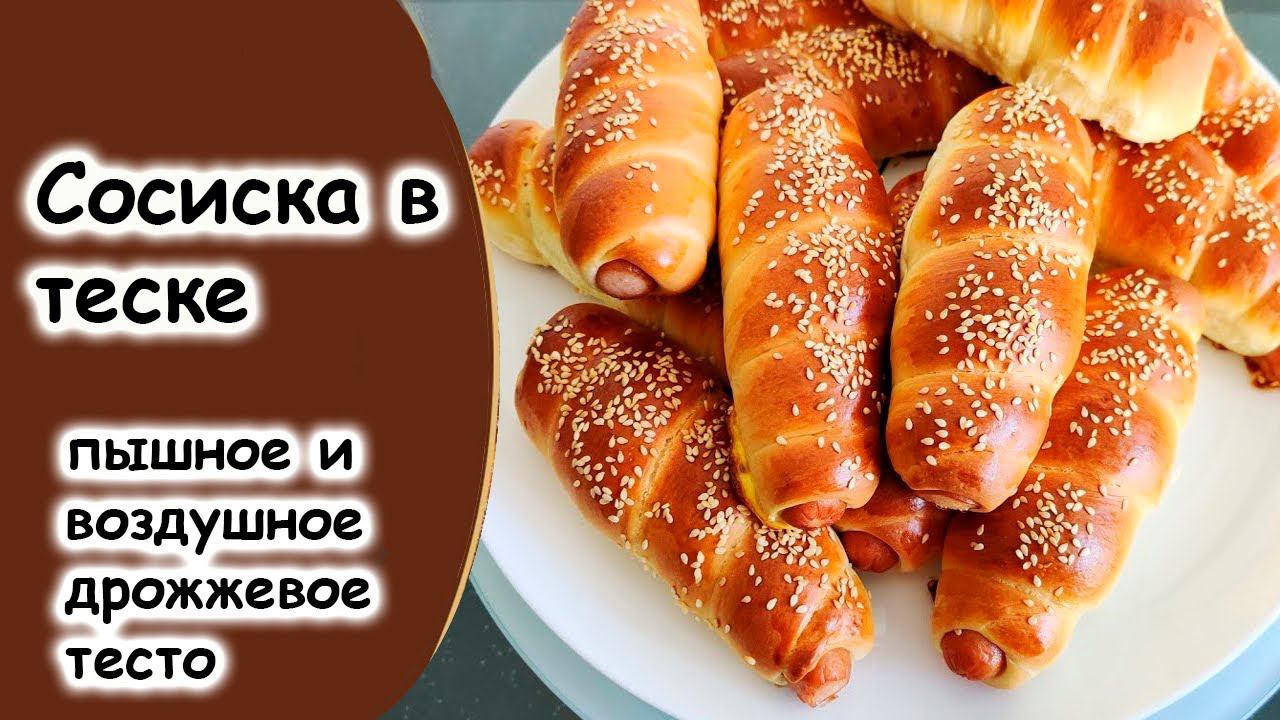 Сосиски в сдобном тесте Ингредиенты Сосиски 12 штук Молоко 250 мл Куриное яйцо 2 штука Сливочное масло 50 г Сахар 1 столовая ложка Соль щепотка Пшеничная мука 500 г Сухие дрожжи 11 г Рецепт 1. В 100 мл теплого молока добавить 1 чайную ложку сахара и дрожжи, оставить на 10 минут. Дрожжи должны подойти — появится пышная пена. 2. Яйцо смешать с оставшимся сахаром и солью. Добавить оставшееся теплое молоко, дрожжи и сливочное масло, размягченное при комнатной температуре, перемешать. 3. Добавить муку и замесить тесто. Тесто разделить на 12 частей, скатать колобки. 4. Из каждого колобка скатать жгут длиной приблизительно в два раза больше, чем сосиска. При помощи скалки придать тесту плоскую форму. Каждую сосиску обернуть в тесто по спирали. 5. Выложить на пергаментную бумагу, смазанную растительным маслом. Желток смешать с 1 чайной ложкой воды и смазать им сосиски. Дать сосискам постоять минут 15, чтобы тесто немного поднялось. Выпекать до золотистого цвета при температуре 180 градусов (приблизительно 25–30 минут).