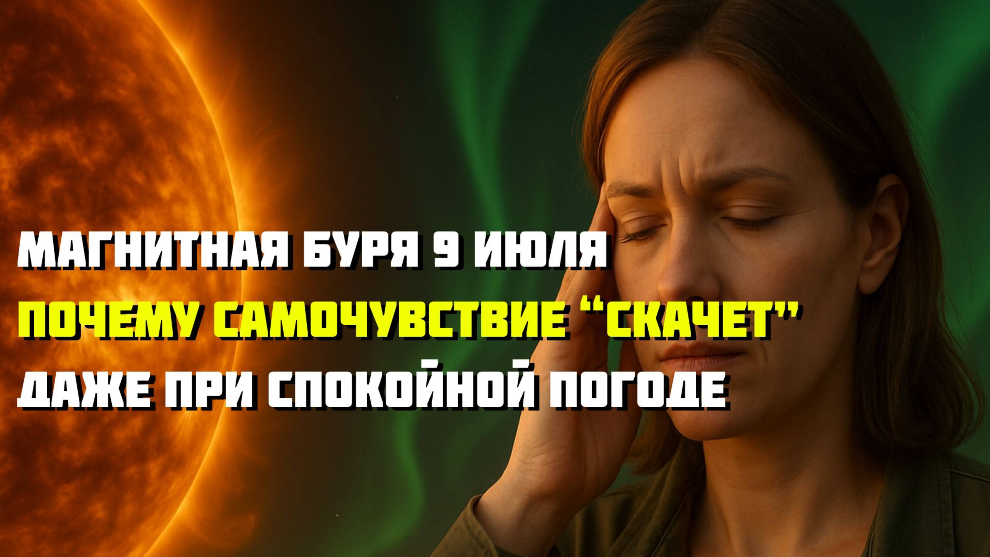 📅 9 июля — нестабильность магнитосферы, и ваше тело это чувствует! Почему при отсутствии бури возникают головные боли, скачет давление, колотится сердце и всё раздражает без причины? Разбираем, как даже слабая геомагнитная активность (Kp=3) влияет на самочувствие, сон, психику и настроение. 🌍 В выпуске: — Что происходит с магнитосферой Земли 9 июля — Почему метеозависимые чувствуют бурю, даже если «всё спокойно» — Как отличить влияние магнитных волн от «возраста» — Советы, что делать сегодня: режим, питание, отдых — Влияние на GPS, технику, электросети и перелёты — Прогноз: когда ждать настоящей бури (10–12 июля)