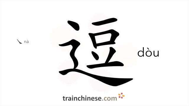 逗 (dòu) induce; to tease; stay; play; linger; stop