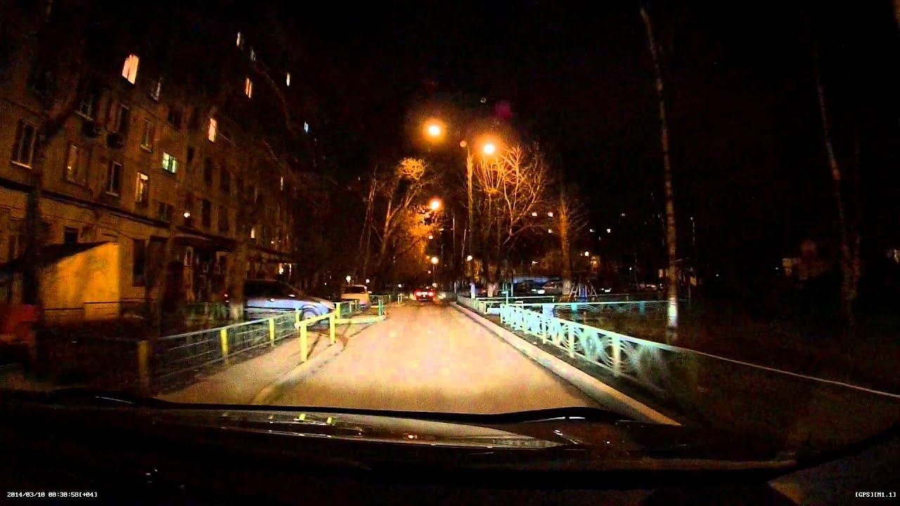 Ночь, дворовая территория. Передняя камера. Blacksys CF 100- подробнее тут: http://car-radar.ru/product/blacksys-cf-100-gps-2ch/