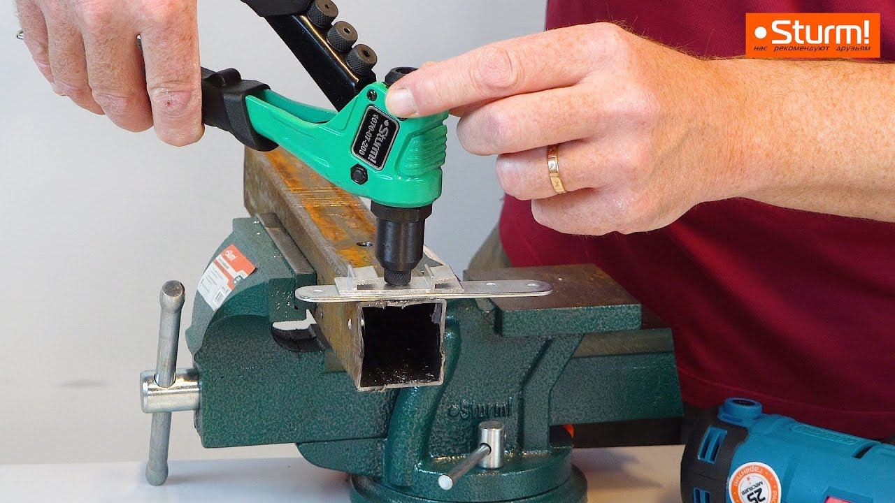 КУПИТЬ ЗДЕСЬ: http://bit.do/eVBea http://bit.do/eVBea Советуем посмотреть видеоролик "10 предметов для 101 задачи" - http://bit.do/eVFDS Заклепочник Sturm! 1070-07-200 Лёгкий корпус отлитый под давлением из прочного алюминиевого сплава. Позволяет работать долго и комфортно! Эргономичные рукоятки разработанные с учётом физиологических особенностей человека. Обеспечивают минимальную усталость и точность в работе! Ступица, подвижная обойма упор и подвижный рычаг изготовленные из качественных легированных сталей. Гарантируют длительную безотказную работу! Сменные насадки для заклёпок: 2,4/3,2/4,0/4,8 мм. Делают этот мощный инструмент универсальным помощником при монтажных работах! Резьбовые отверстия для хранения сменных насадок в подвижном рычаге. Позволяет иметь насадки «под рукой», если необходимо использовать другой тип заклёпок! #заклепочник #лайфхак #заклепки