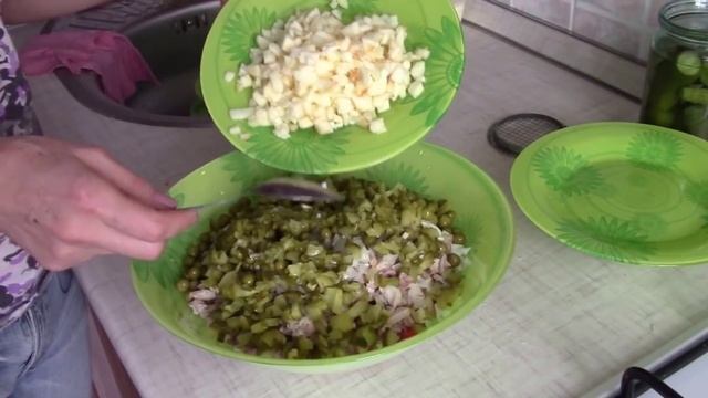 Салат "Оливье" еще его называют "Зимний салат" готовят по разному. Мой вариант приготовления салата. Зимний салат сытный и очень вкусный, поэтому его часто готовлю в будничные дни и на любое торжество.