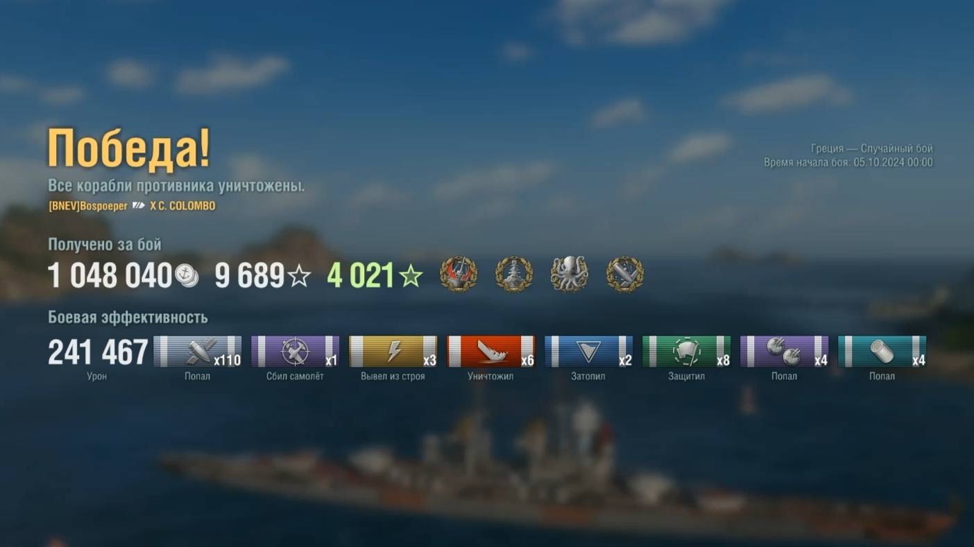 Линкор Cristoforo Colombo : +241к урона 6 фрагов на карте Греция - World of Warships