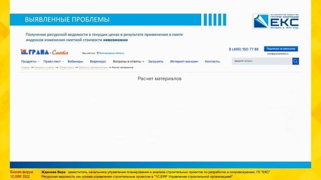 Выступление Ждановой Веры с докладом о тои, как управление ресурсами в контексте сметной документации с трансляцией в бюджет ИС АО "ГК ЕКС" помогает повысить эффективность оценки проектов.