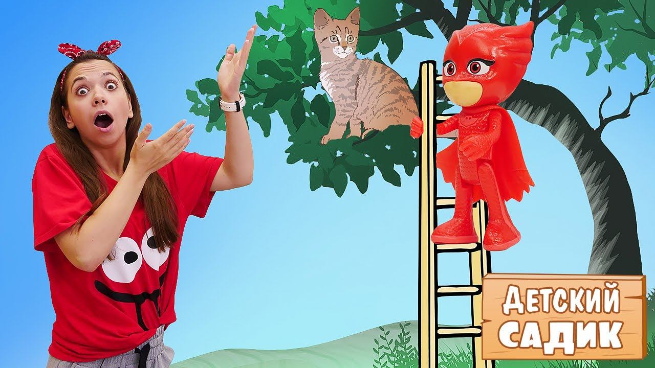 Детский садик Капуки Кануки. Малыши на детской площадке спустили котенка с дерева. Видео для детей