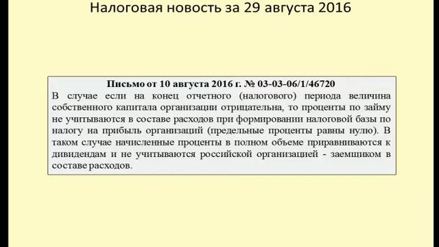 29082016 Налоговая новость об учете процентов по контролируемому долгу