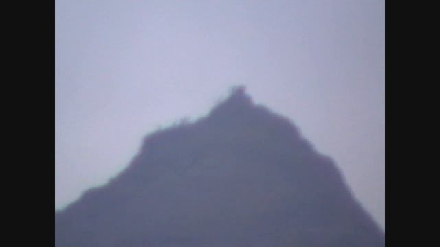 Zooming in on people at summit of Snowdon. 20SEP09. From layby above the viewing area on A498. Panasonic SDR - S26