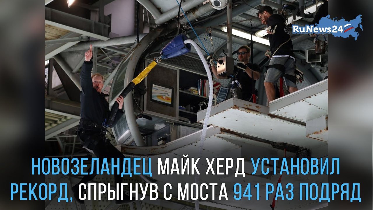 Житель Новой Зеландии Майк Херд установил в банджи-джампинге новый мировой рекорд. В течение суток 41-летний американец 941 раз спрыгнул с моста. Таким образом Херд улучшил личное достижение 2017 года, которое составляло 441 прыжок. Кроме того, он побил мировой рекорд, который в 2022 году был установлен Франсуа-Мари Дибоном из Франции. Результат француза — 765 прыжков с моста. Майк Херд в качестве награды получил 8,1 тысячи долларов, которые он передал в пользу пациентов с ментальными нарушениями. #новая_зеландия #рекорд #прыжок