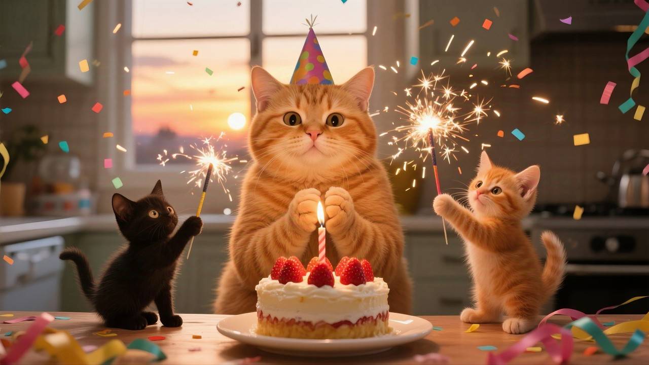 😹Мама кошка празднует своё день рождения со своими маленькими котятками🔥