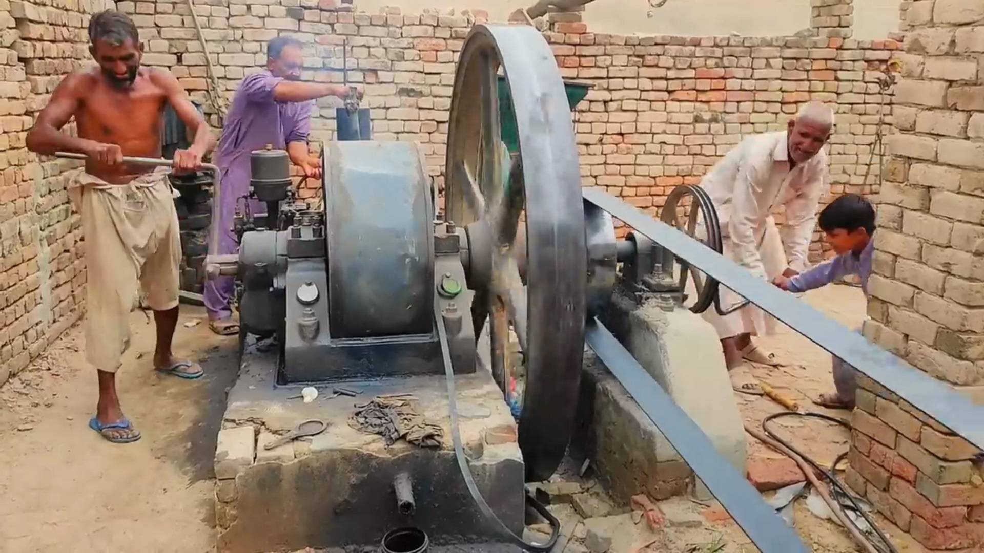 Рукастые пакистанцы заводят 60-ти летний двигатель для сельхоз нужд!