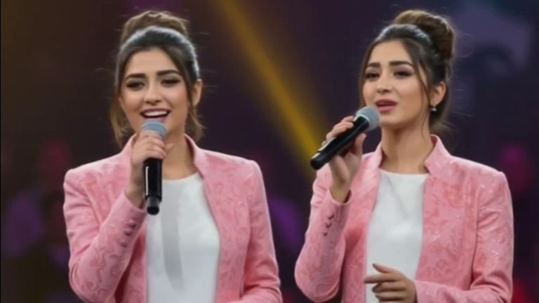 Вертикальное сгенерированное видео. Две певицы с микрофонами